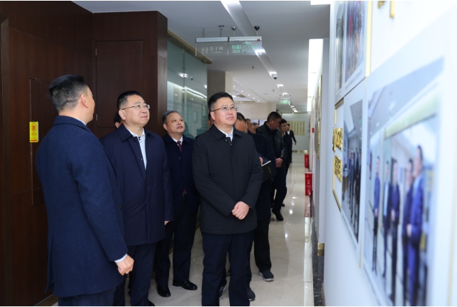 尹江涛一行参观了解公司在基层党建、企业文化及矿山运营等方面情况,并通过远程实时监控系统查看梭罗沟金矿生产工艺流程。